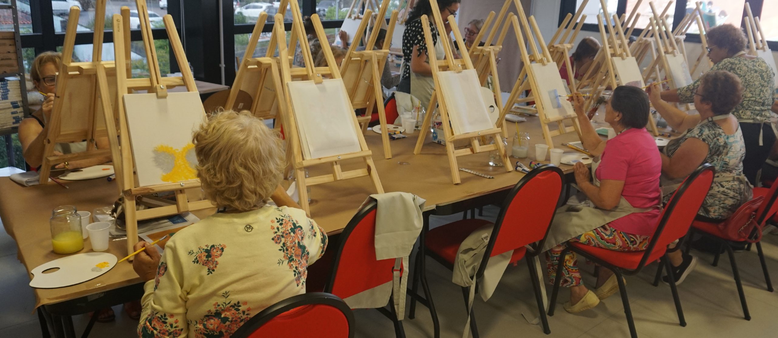 As aulas foram conduzidas pela professora Maria Regina Monticelli, que trouxe técnicas, dinâmicas e muita energia para estimular a criatividade, a saúde física e o bem-estar dos idosos.